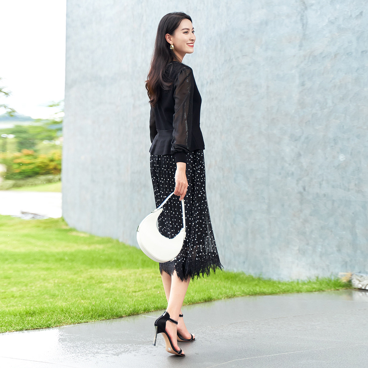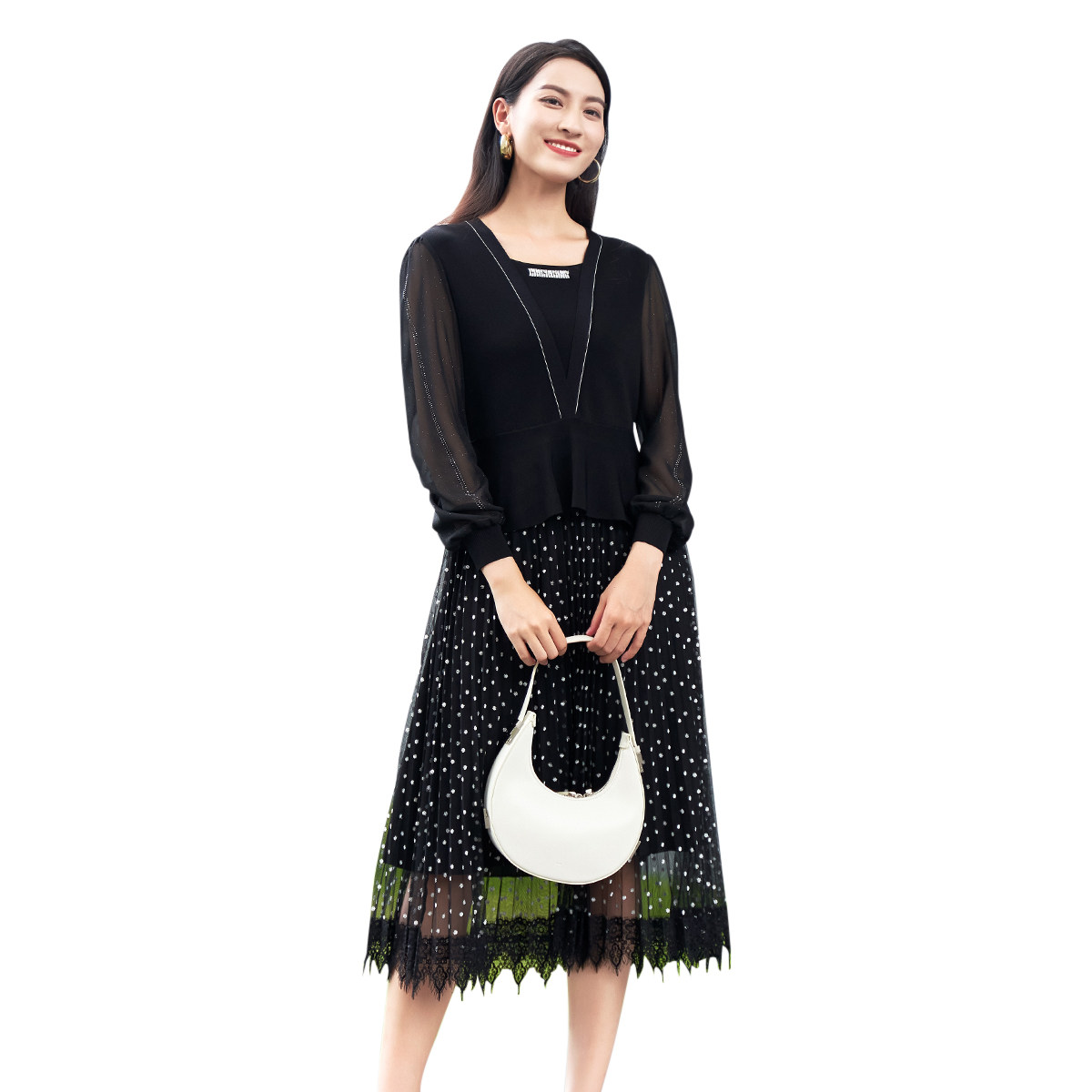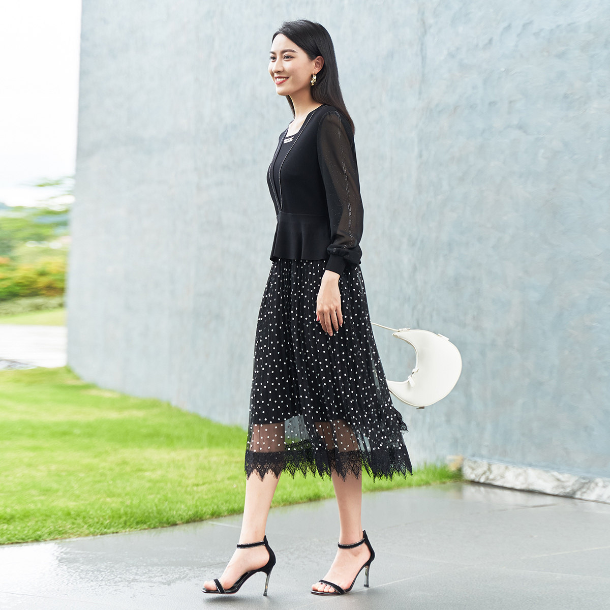 高腰修身 优雅女连衣裙 中长裙1D11L3511 专柜新款 歌蒂诗春季