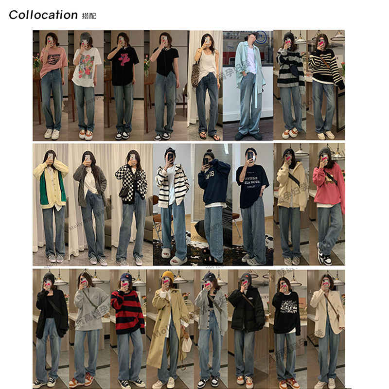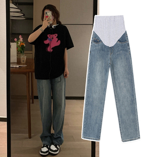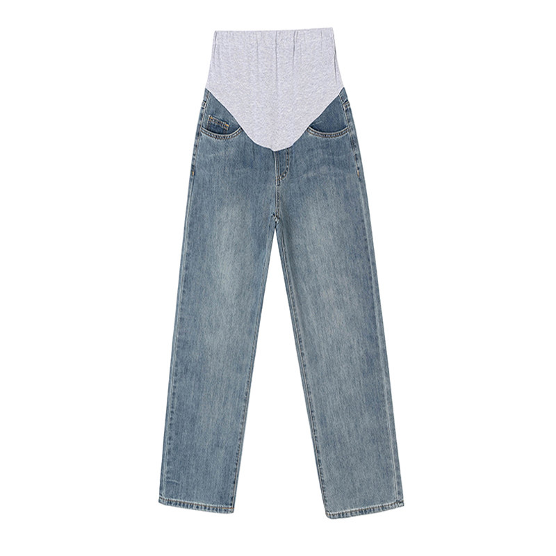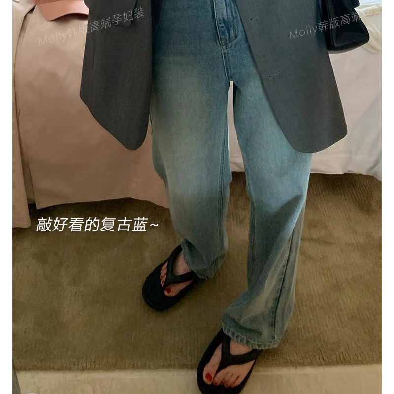 宽松直筒阔腿长裤 孕妇复古蓝拖地牛仔裤 春秋外穿加绒加厚显瘦时尚