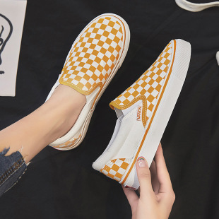 懒人鞋 黑白色低帮帆布鞋 一脚蹬休闲板鞋 松紧套脚轻便半拖鞋 女春季