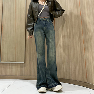 辣妹显瘦不贴腿拖地喇叭裤 美式 新款 女2025秋季 子 深蓝色微喇牛仔裤
