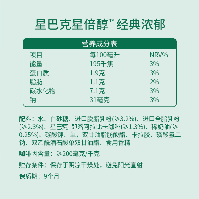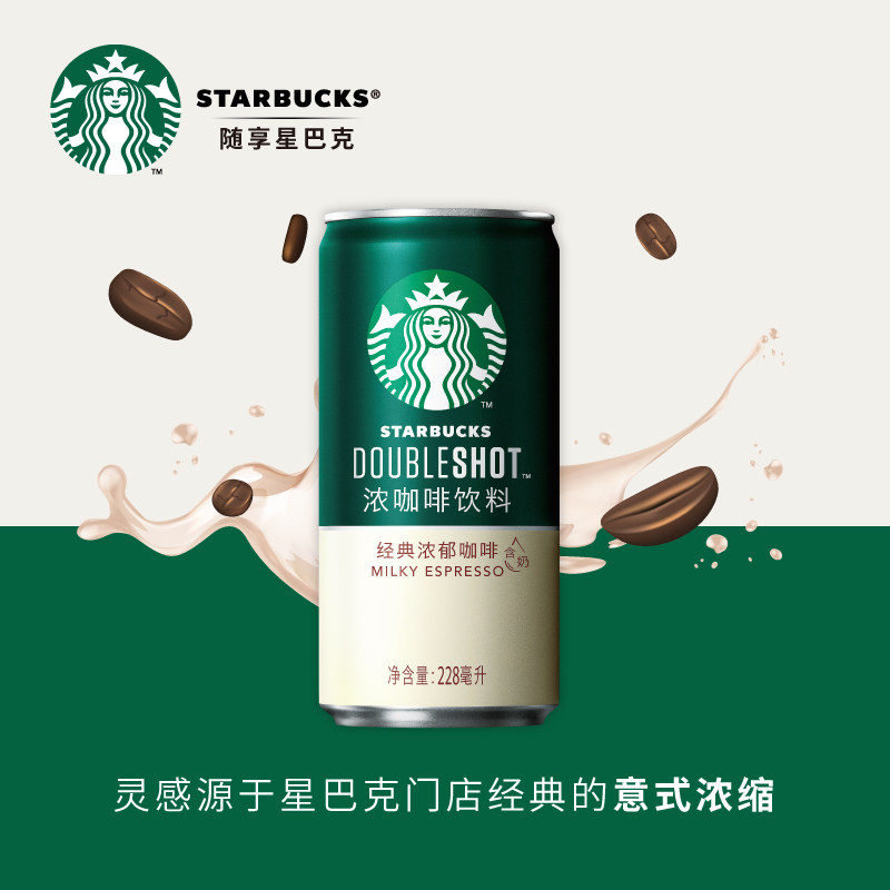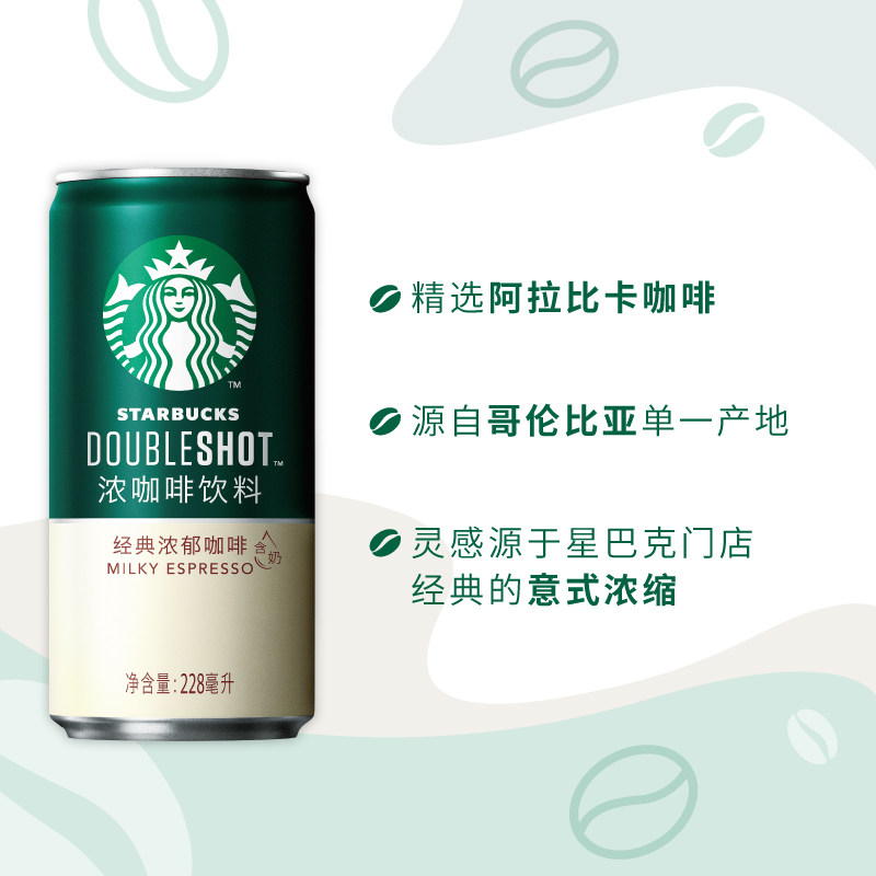 X2倍咖啡因 6罐即饮浓咖啡 浓郁228ml 星巴克小绿罐星倍醇经典