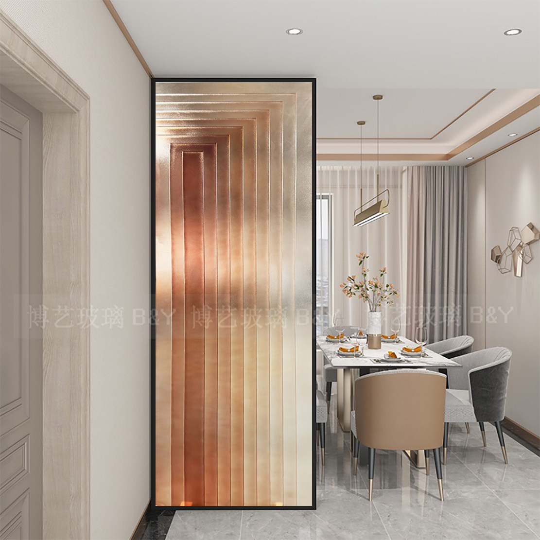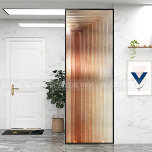 玄关艺术玻璃现代轻奢风格 入户玄关卫生间门口隔断双面玻璃屏风门