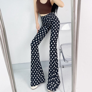 包臀显高 女高腰高弹百搭加长阔腿裤 春秋新款 黑白印花条纹喇叭裤