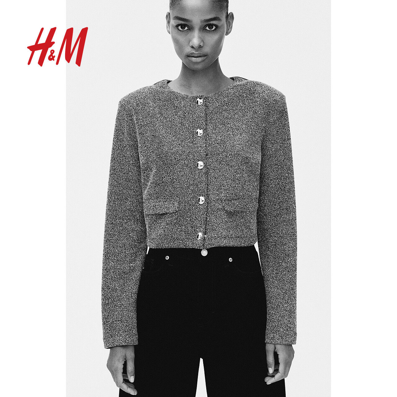 垫肩开衫 新款 1274435 短外套2025年冬季 HM女装