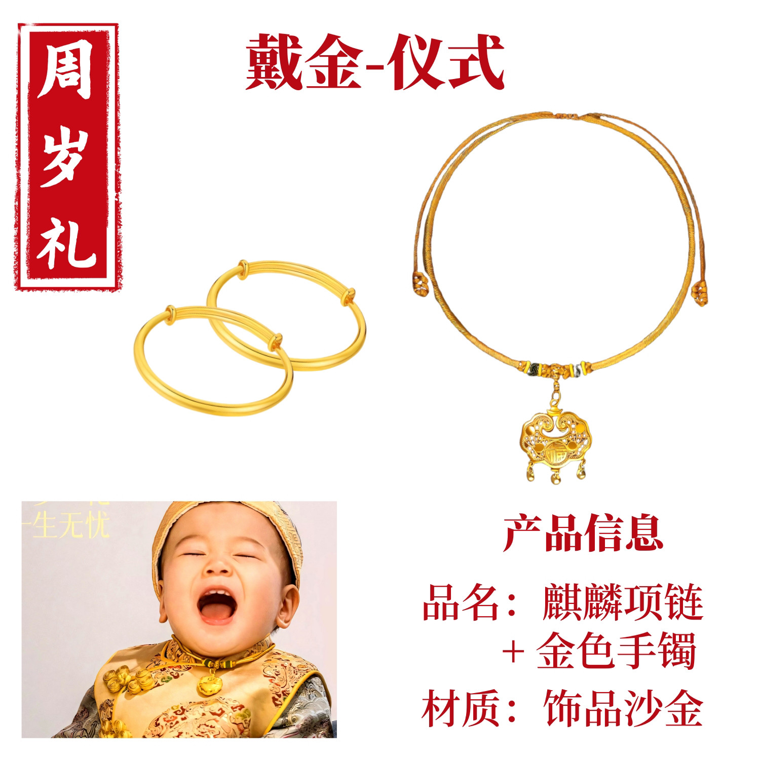宝宝周岁礼梳头启智戴金仪式 过聪门背景拍照道具生日对联抓周全套