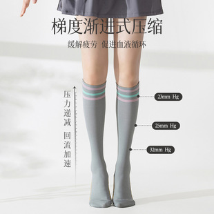 瑜伽小腿压力袜女跑步跳绳夏季 灰色羽毛球健身专业运动肌能压缩袜