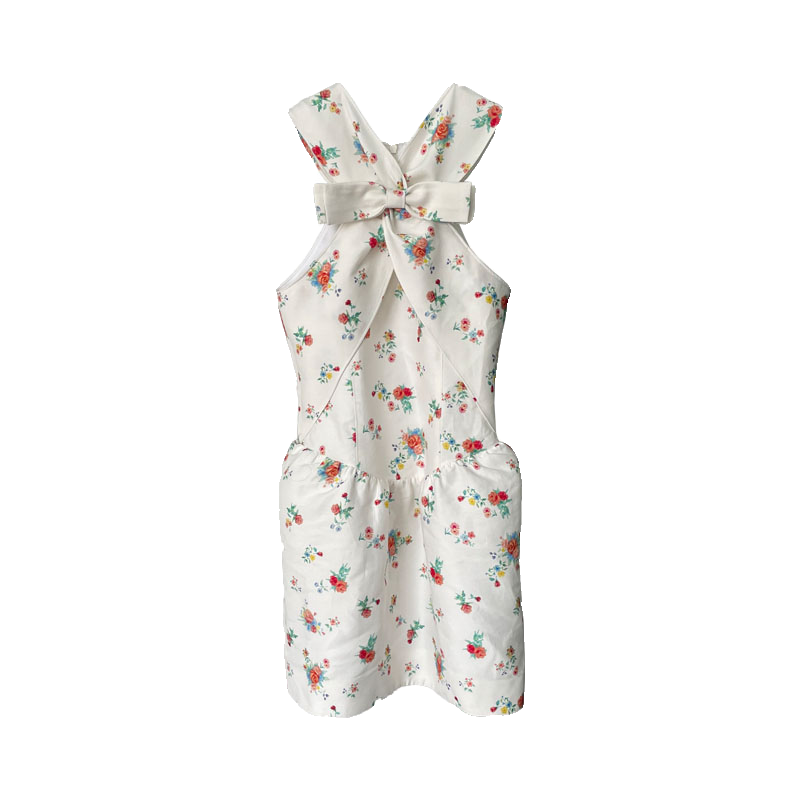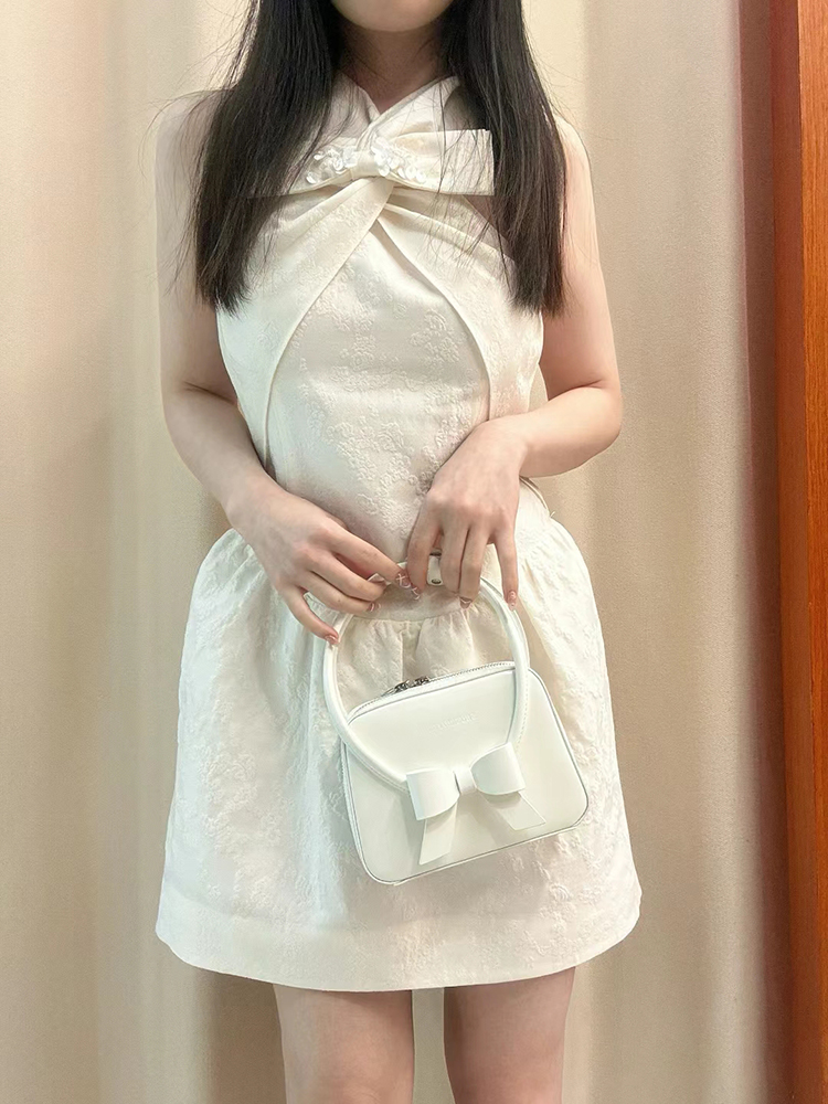 甜美蝴蝶结碎花收腰连衣裙时尚 白鹿同款 提花交叉短裙子 shushu