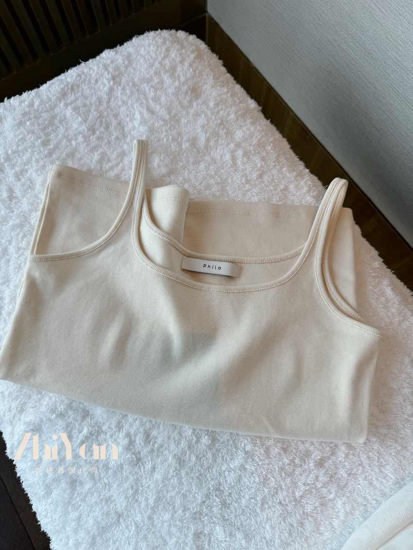 智研 韩国进口百搭王杏色纯棉质感细肩带吊带背心打底