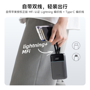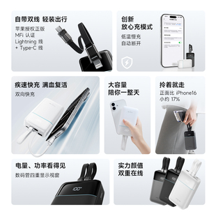 苹果 酷态科CP24电能块自带lightning线MFi认证移动电源电芯20000毫安时PD快充适用于小米 充电宝3C认证