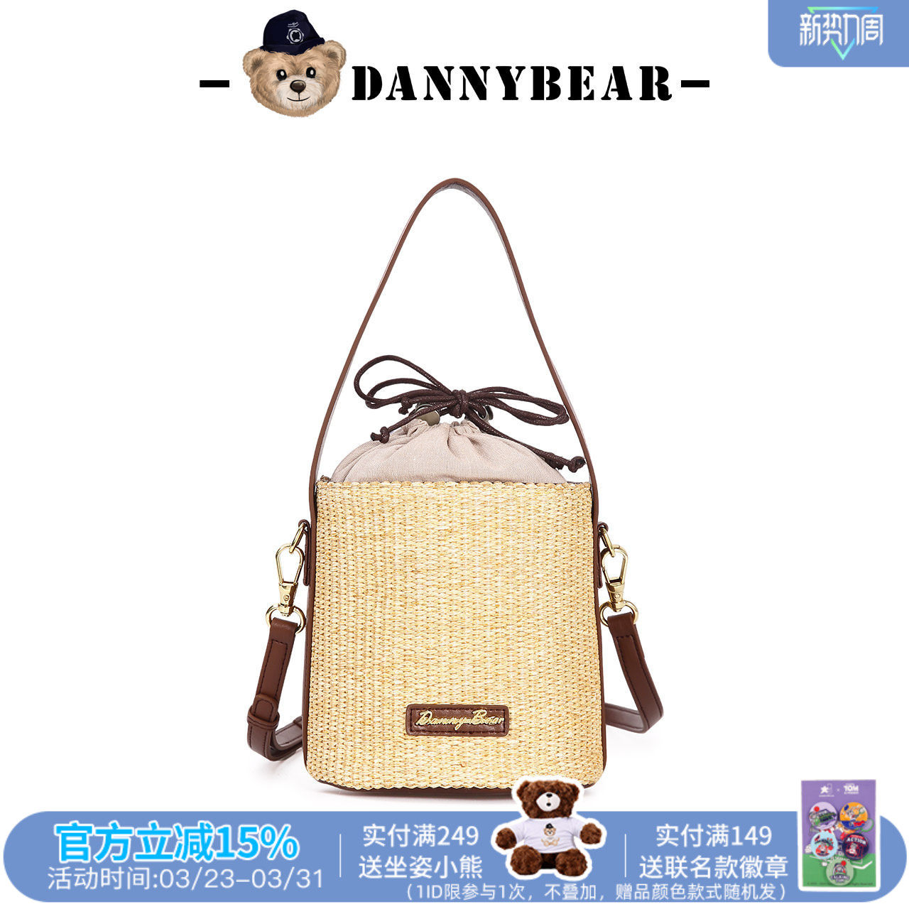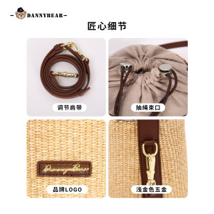 草编包丹尼熊编织水桶包女通勤百搭简约藤编包沙滩度假包5825030