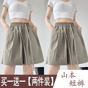 外穿高腰显瘦宽松a字阔腿五分裤 单 女2025夏季 冰丝山本短裤 两件