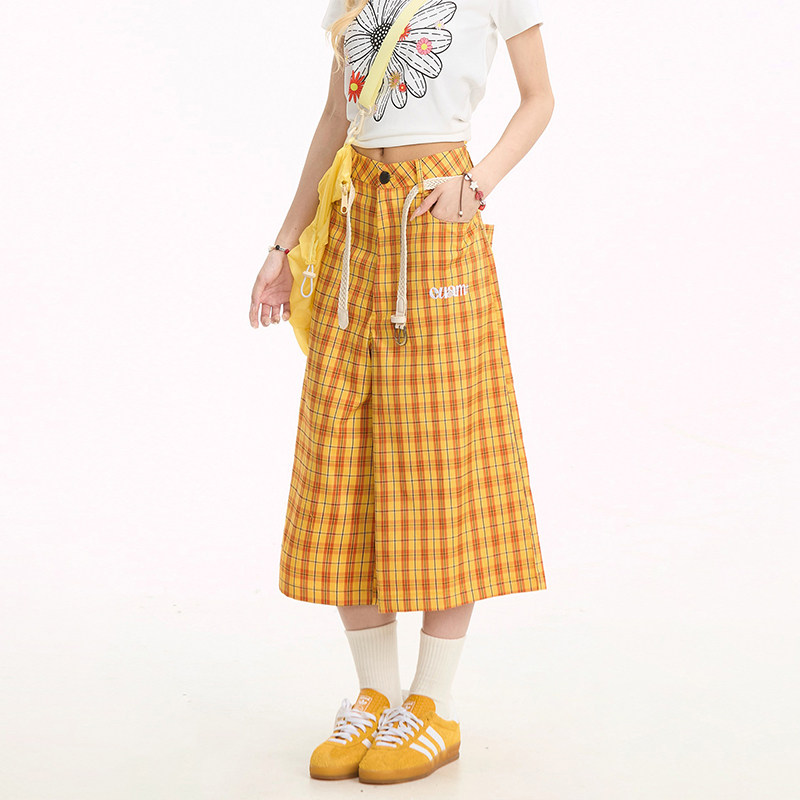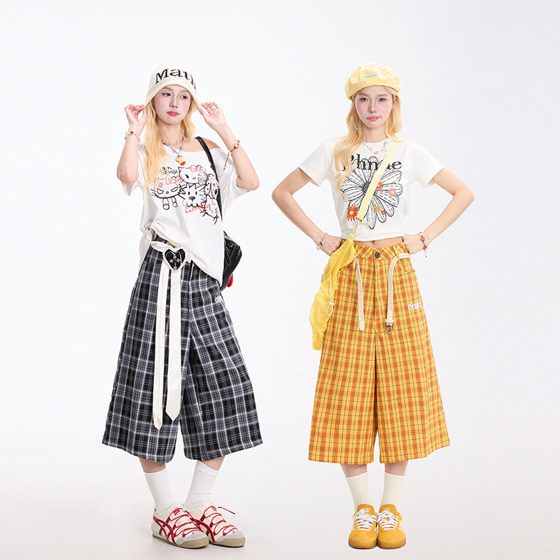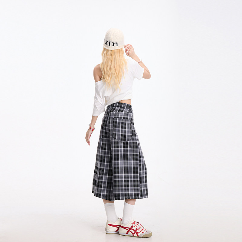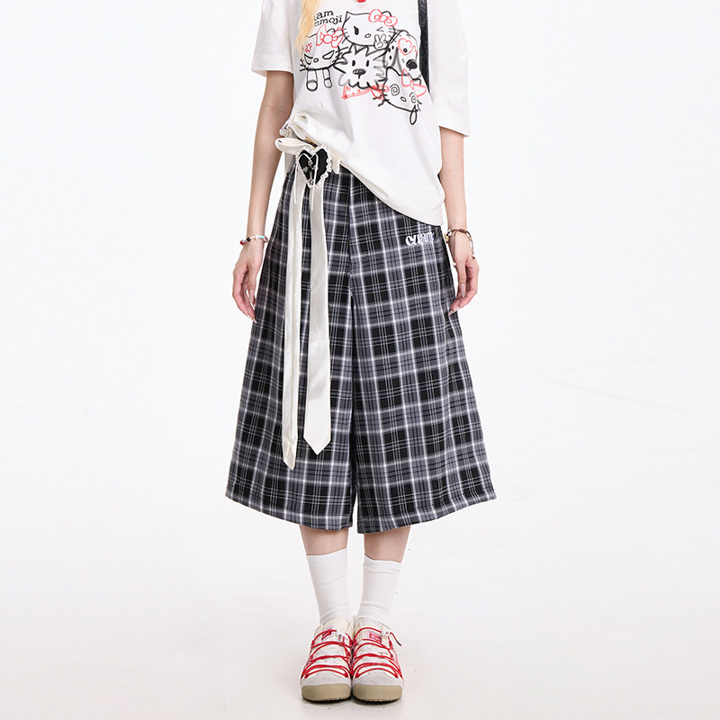 慵懒街头显瘦休闲短裤 女多巴胺夏季 复古格子七分裤 NERESUM美式