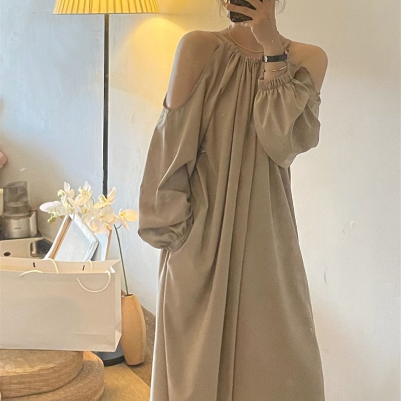 高个子孕妇裙夏 连衣裙过膝长裙子小众设计感法式 春装 孕妇露肩长袖