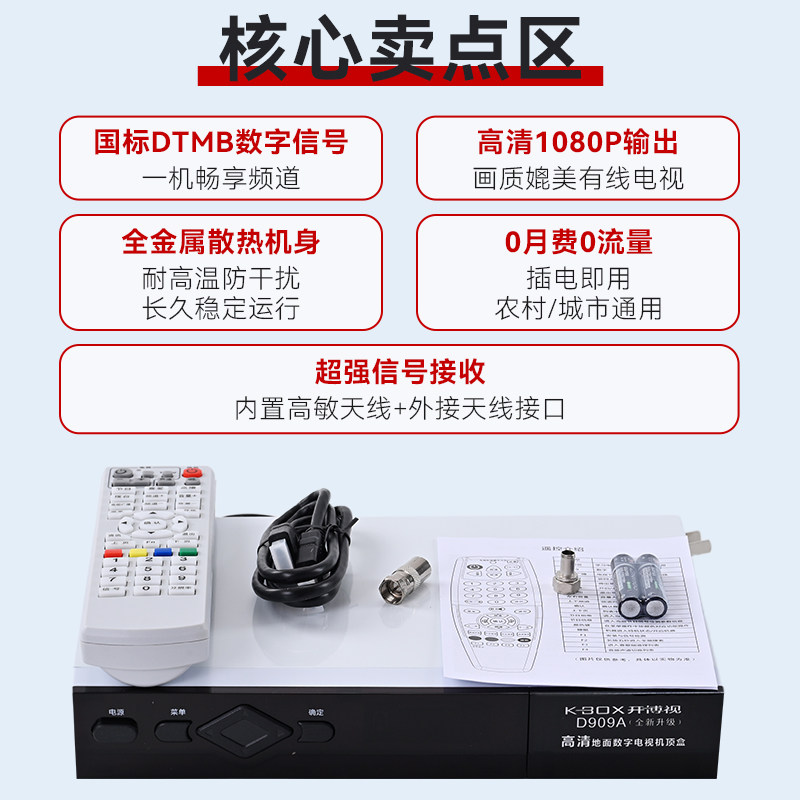 开博视D909A高清数码 电视天线地面波数字机顶盒接收器KBOX无线室内室外DTMB农村户外八木通用香港杜比AC3AVS