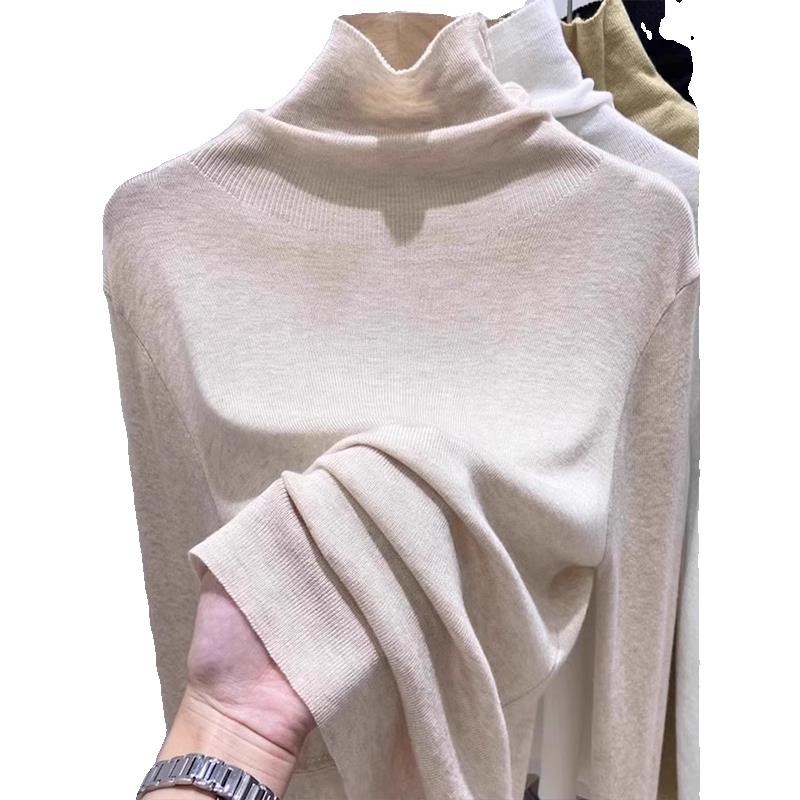 粉紫色毛衣女秋冬大衣内搭高级y感温柔风韩系堆堆领针织打底衫 上