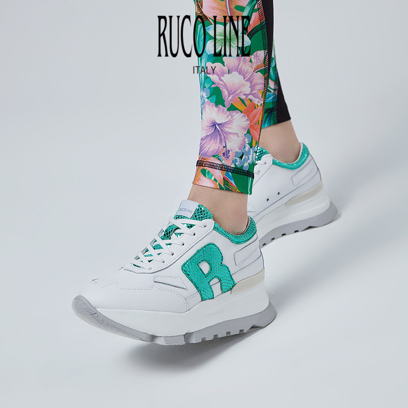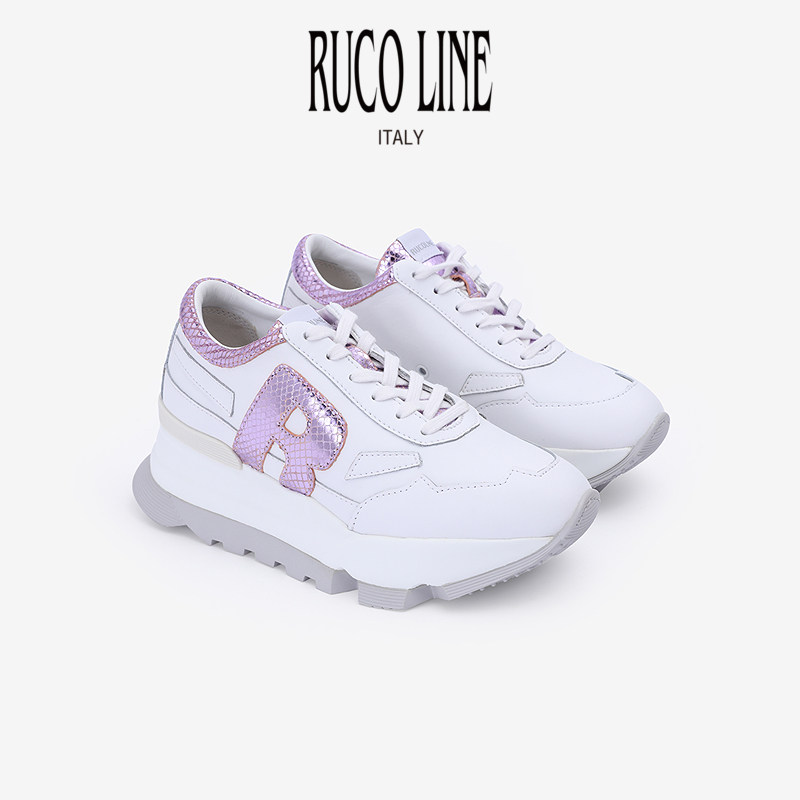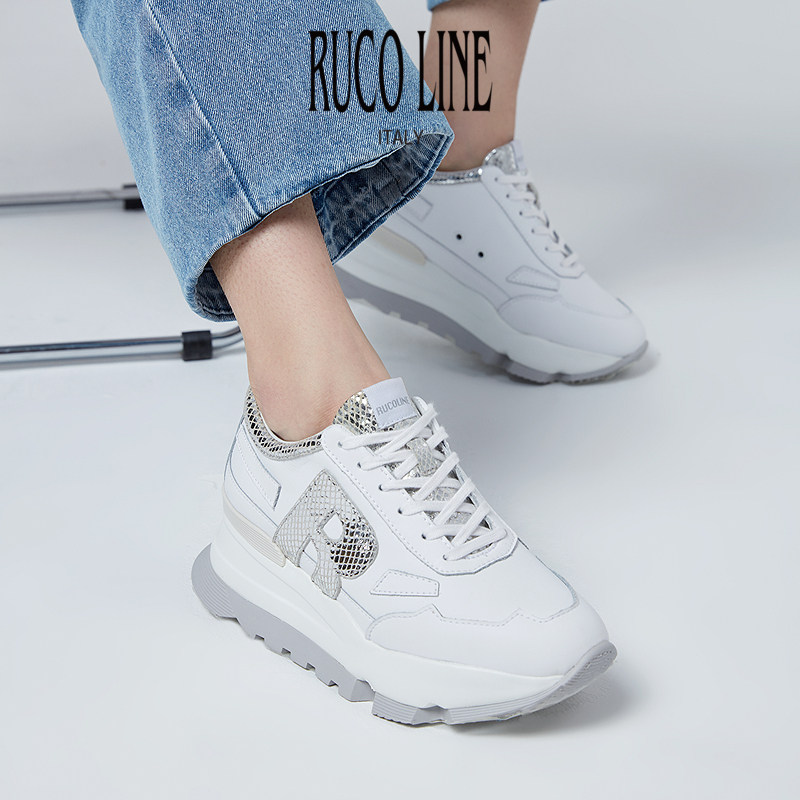 增高鞋 Ruco 女休闲跑鞋 真牛皮鞋 Line如卡莱意大利蛇皮纹7cm厚底鞋