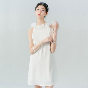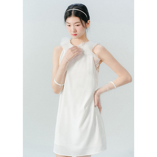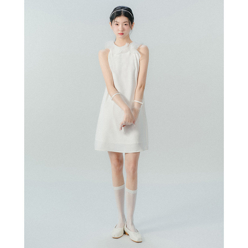 奥斯汀花瓣领无袖 纱幕 连衣裙 bridal blushwhite