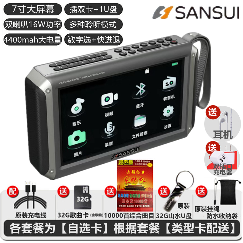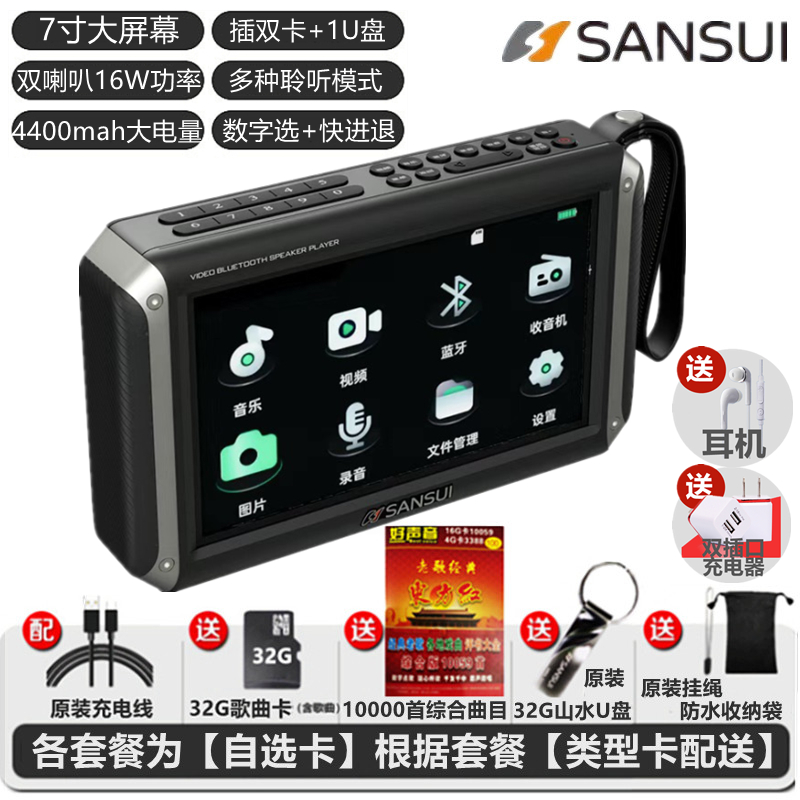 山水官方新款 收音机视频播放器F55音箱MP4蓝牙插卡音响老人看戏机