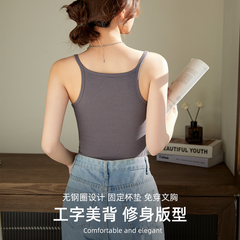 显瘦美背无胸垫外穿上衣 修身 白色纯棉小吊带背心内搭女夏秋季 新款