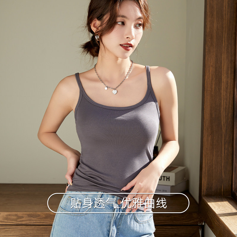 休闲吊带背心女春夏内搭西服外穿2024年新款 上衣 莫代尔棉螺纹无袖