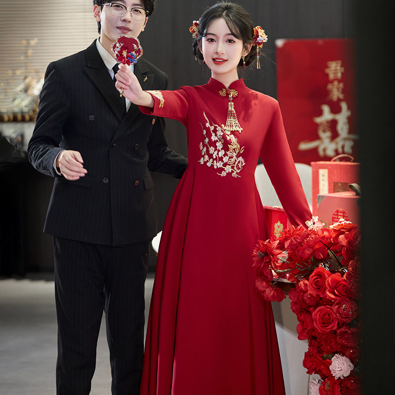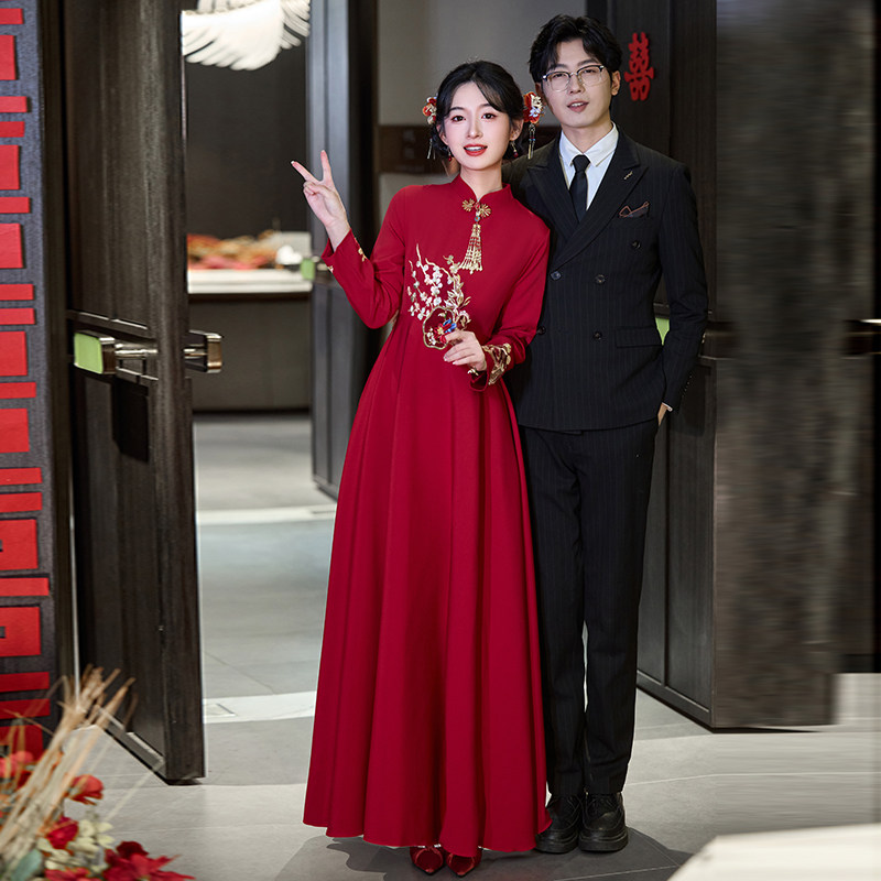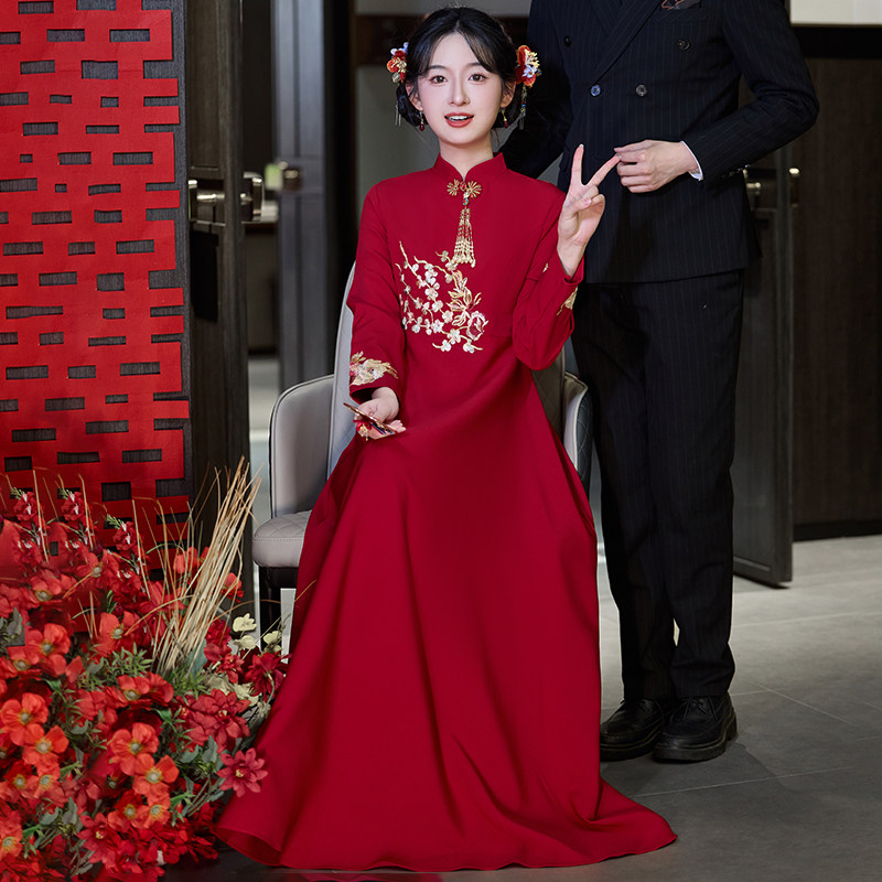 高级感胖mm大码 改良旗袍敬酒服新娘高腰遮肚子结婚礼服 孕妇新中式