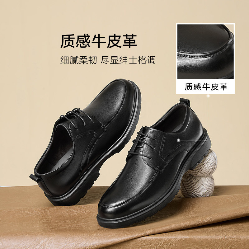 黑色公务皮鞋 真皮休闲棉鞋 通勤加绒保暖冬 男大码 强人3515运动皮鞋