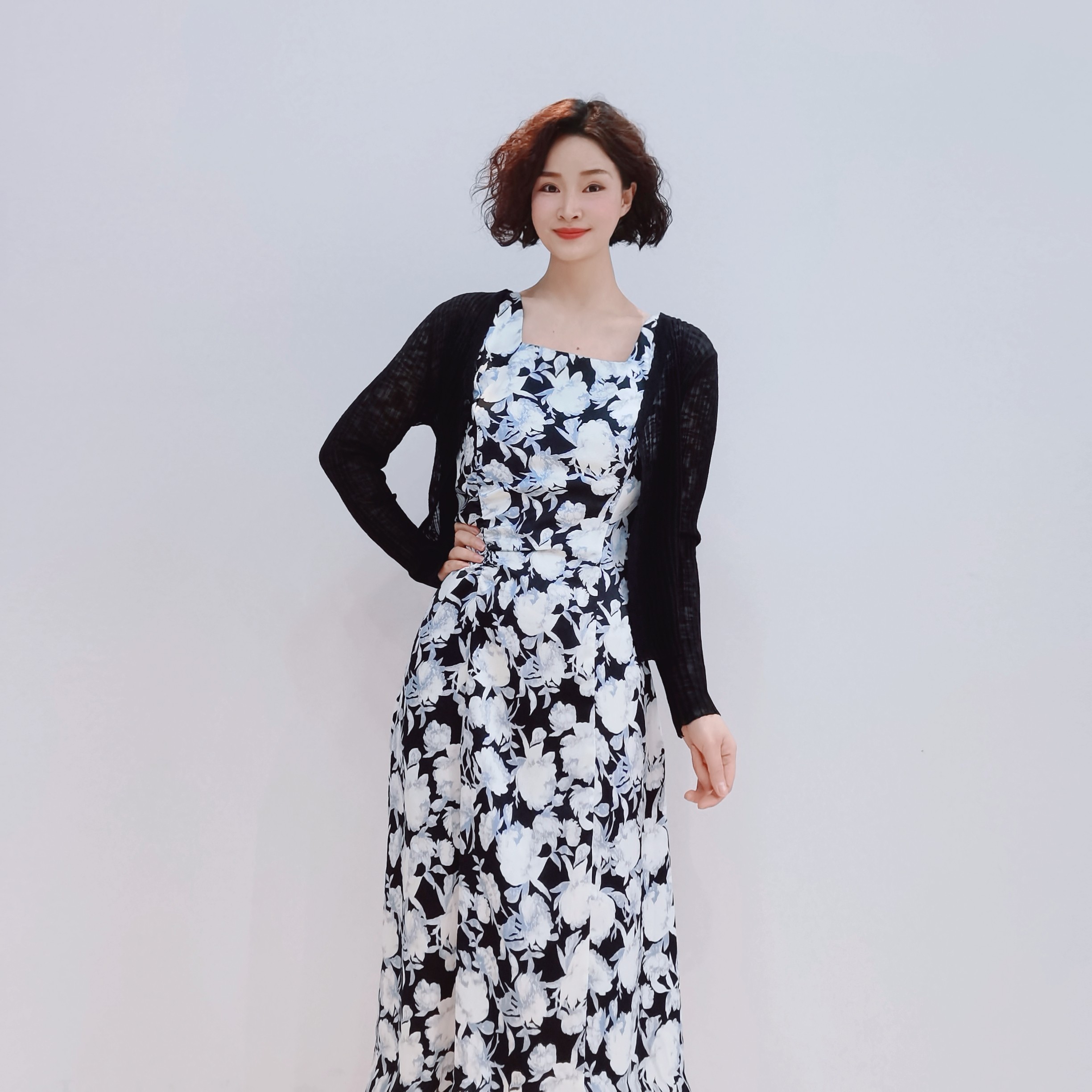 时尚 新款 复古印花显瘦气质通勤百搭套裙 春季 3113