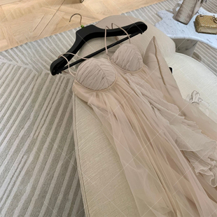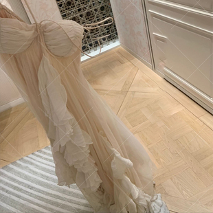 枯木逢春 度假长裙仙女裙 荷叶边雪纺吊带连衣裙女夏季