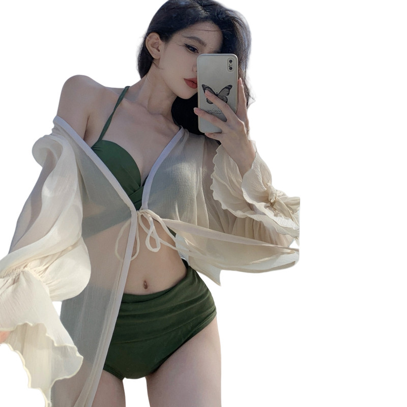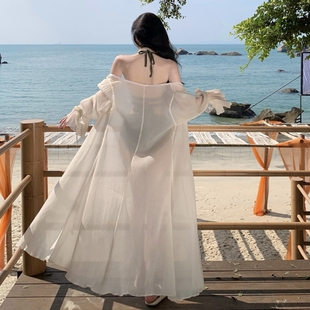 泳衣外搭 沙滩比基尼外套夏季 海边度假清凉飘逸防晒衣开衫 女喇叭袖