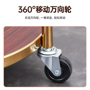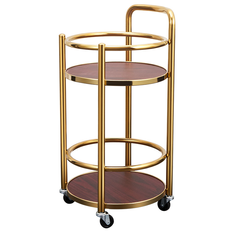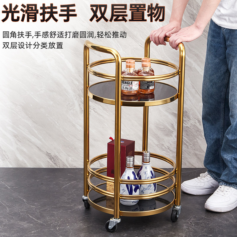 移动小推车高档酒水车双层餐车商用餐厅移动圆形不锈钢手推车简约