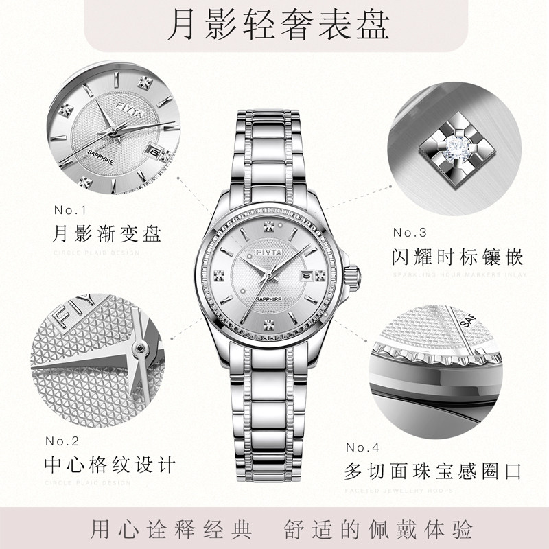 系列机械女表时尚 飞亚达白月光经典 女士气质手表送礼 双旦礼物