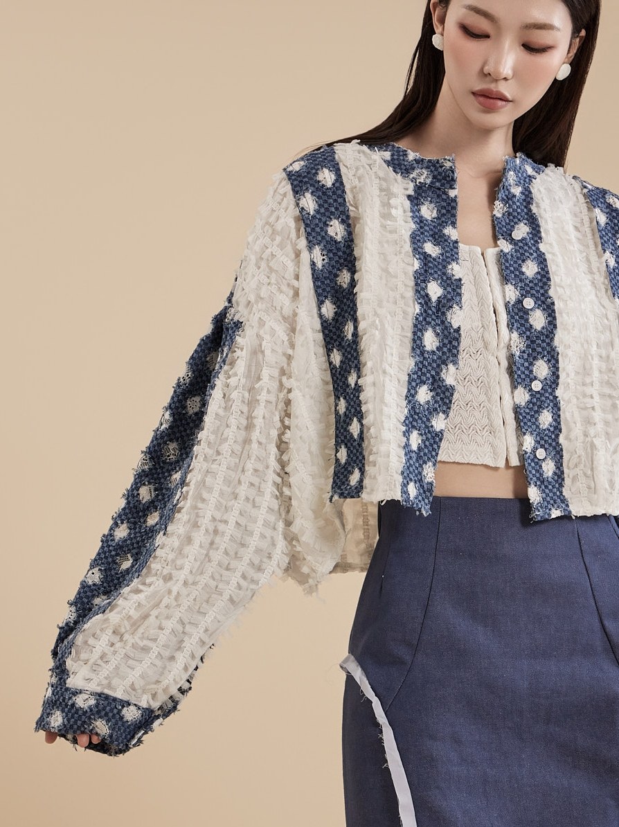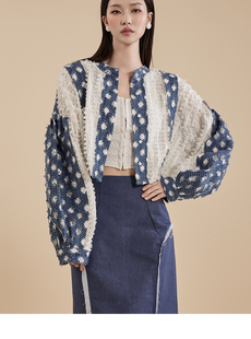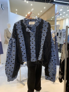 女装 2024早春新款 时尚 牛仔蕾丝编织长袖 B2929 DINT 衬衫 韩国代购