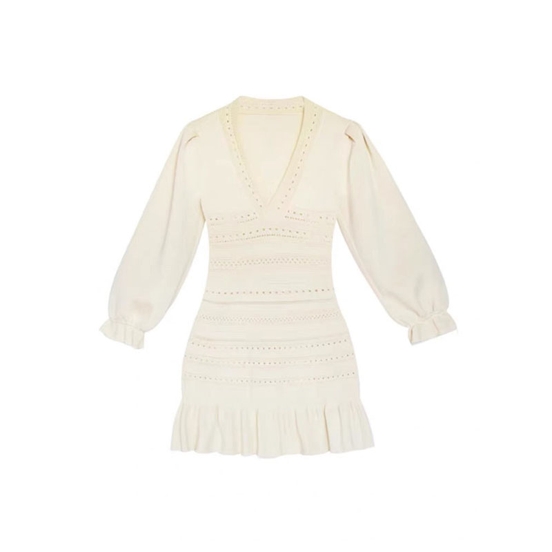 修身 法式 新款 针织连衣裙女2025早秋季 辣妹包臀短裙子 V领镂空长袖