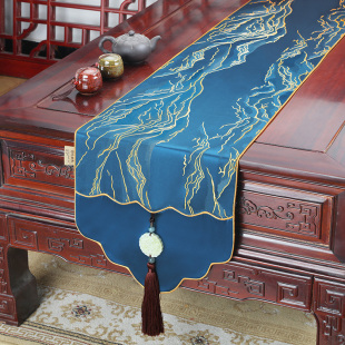 新中式 桌旗茶几桌布禅意茶席防水茶垫餐桌茶台轻奢定制高端长条布