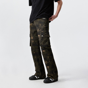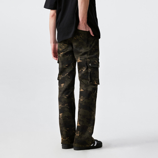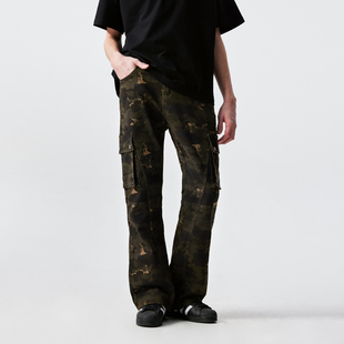 复古炮弹迷彩工装 伐木高街微喇裤 牛仔裤 男款 子 宽松修身 新因素美式