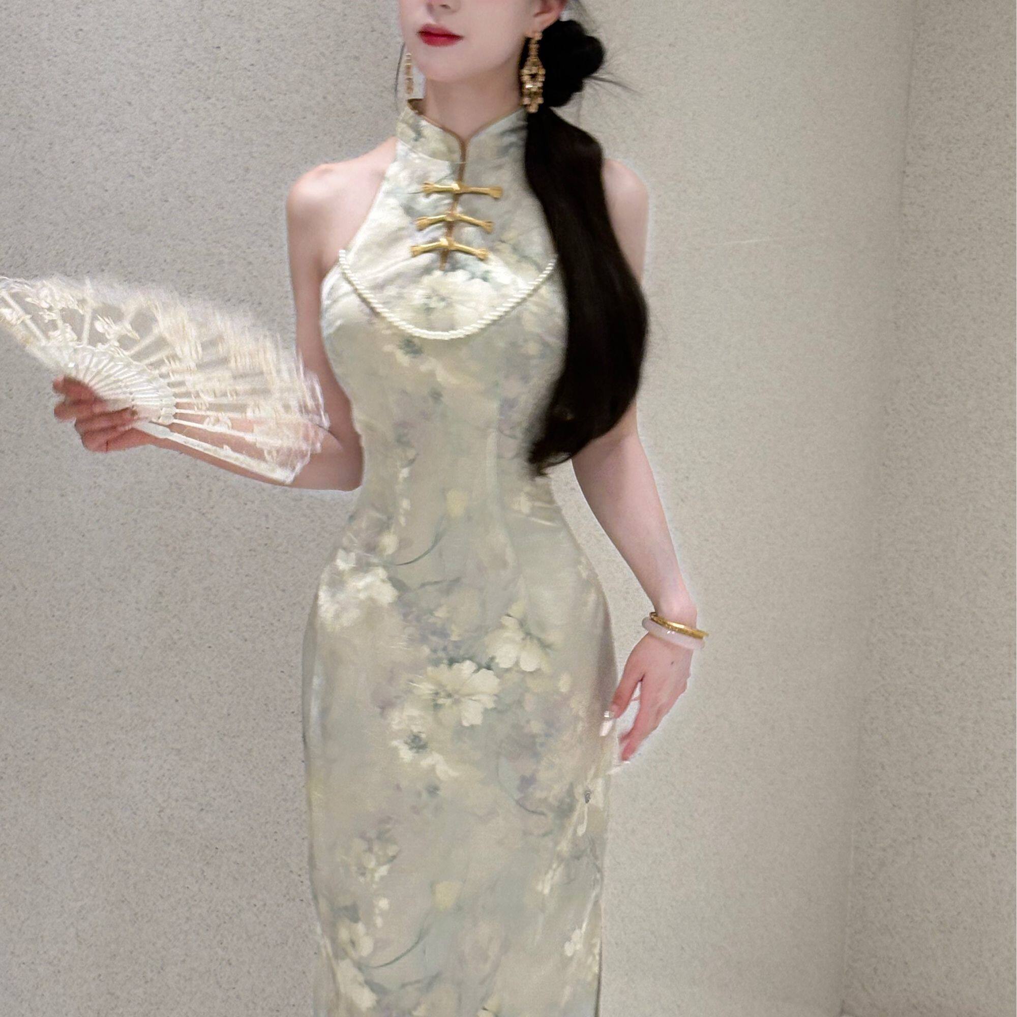 新中式 高端气质日常可穿素雅茶服 复古国风改良奥黛旗袍2025年轻款