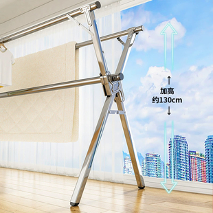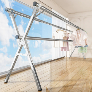 折叠晾衣架室内家用阳台落地卧室不锈钢室外凉伸缩杆式 晒被子神器