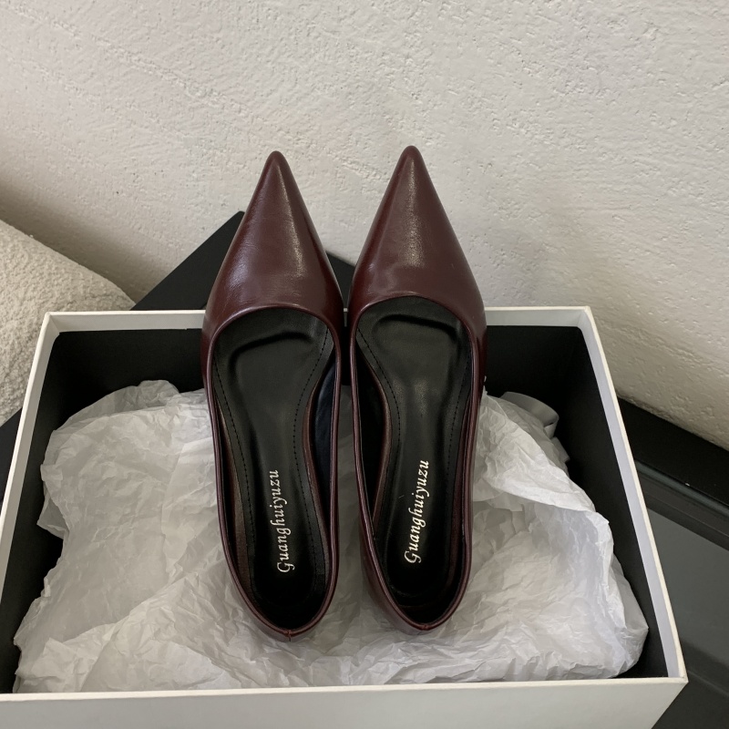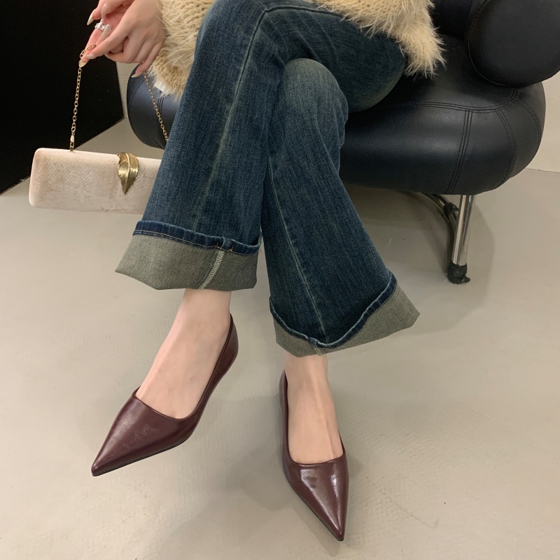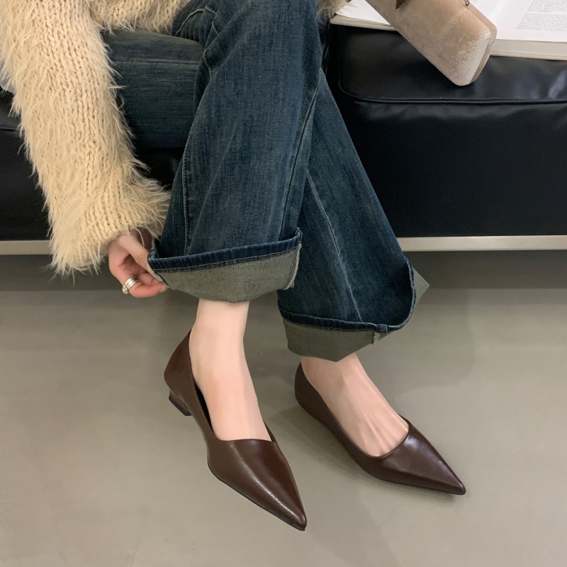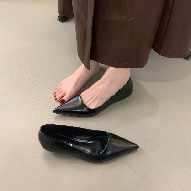 春秋百搭舒适简约尖头通勤高跟鞋 女2025新款 软皮低跟浅口单鞋 法式
