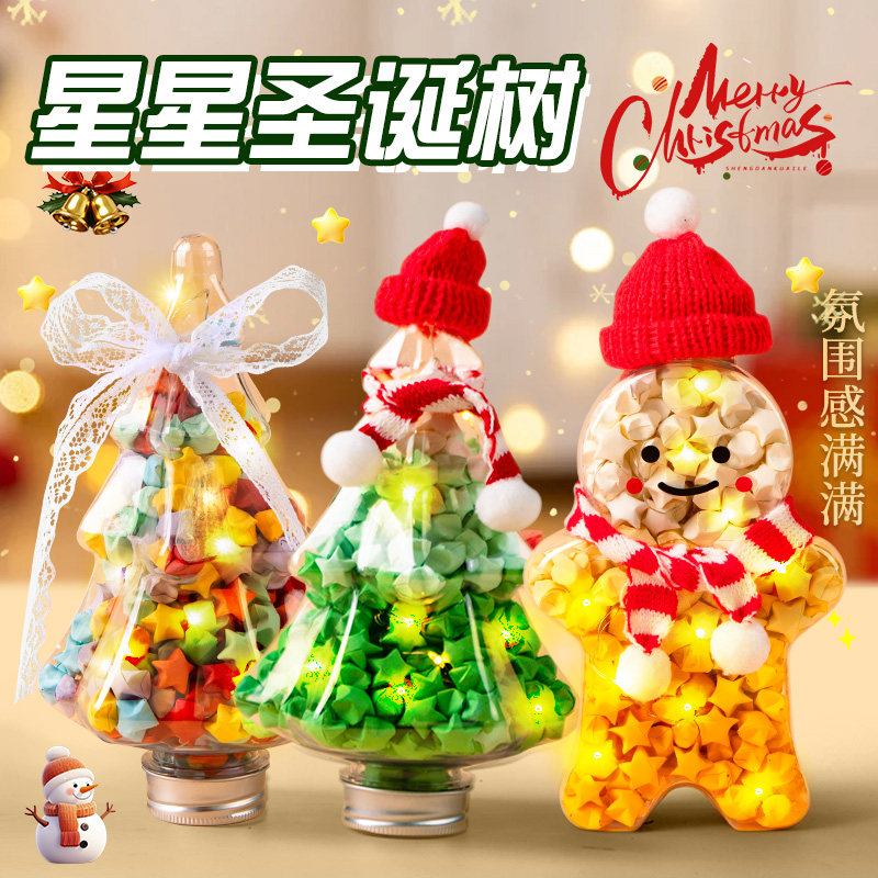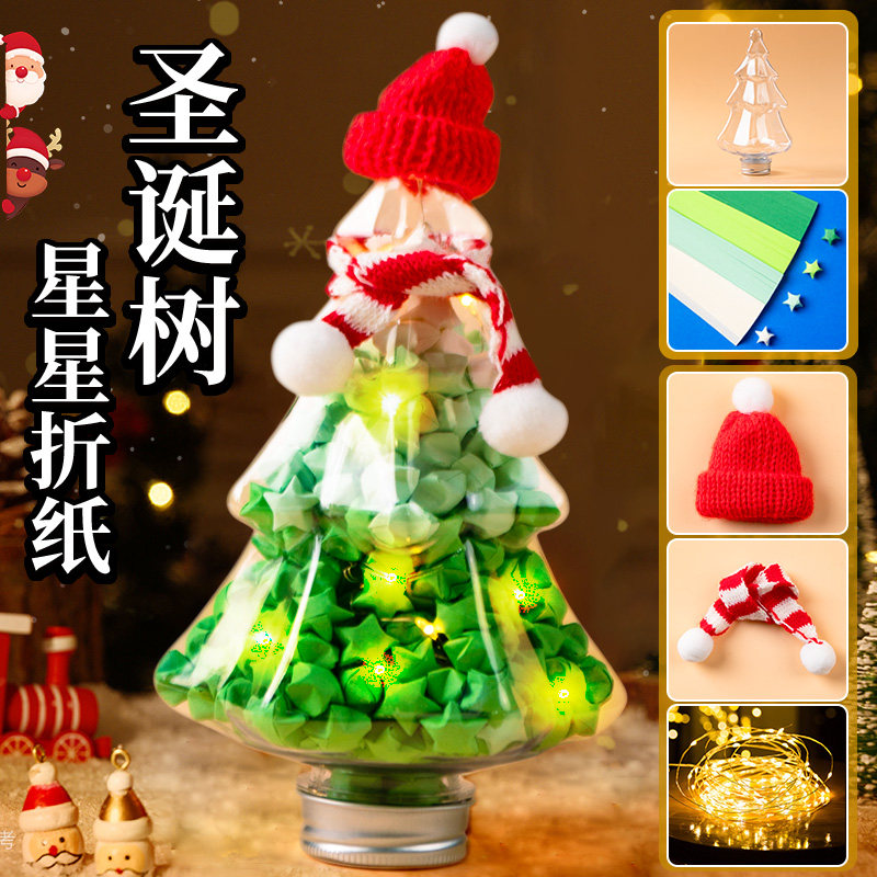 渐变色圣诞树星星瓶小红书同款 幸运星折纸DIY圣诞高颜值手工礼物