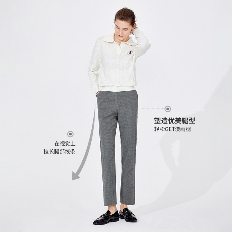 磨毛长裤 Navigare意大利小帆船磨毛休闲裤 裤 中腰通勤西装 女秋季
