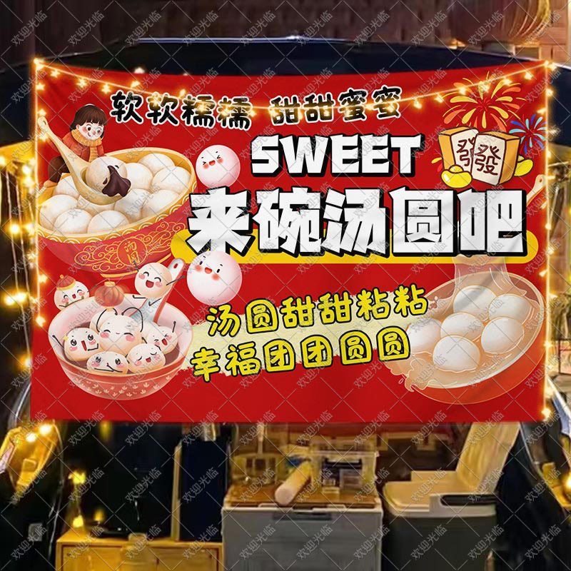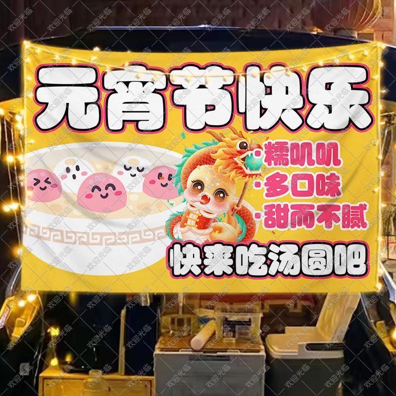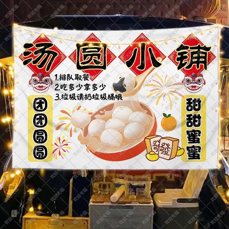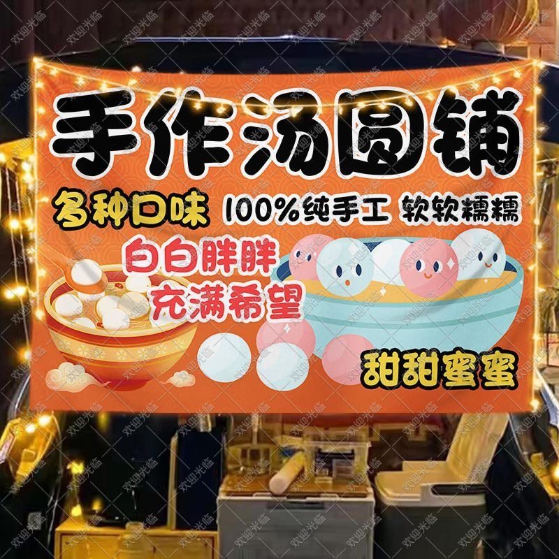 手工元 宵汤圆摆地摊广告挂布后备箱网红集市美食小吃摊背景布横幅