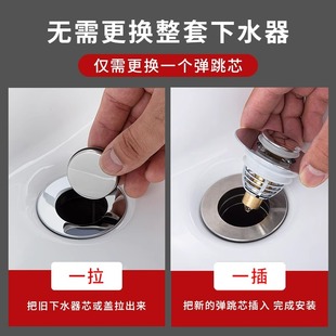 洗手盆漏水塞子洗脸盆下水器配件面盆弹跳芯配件按压式 水槽塞防臭