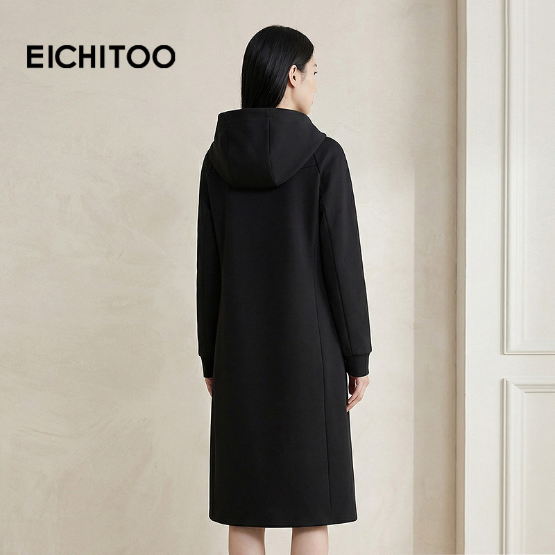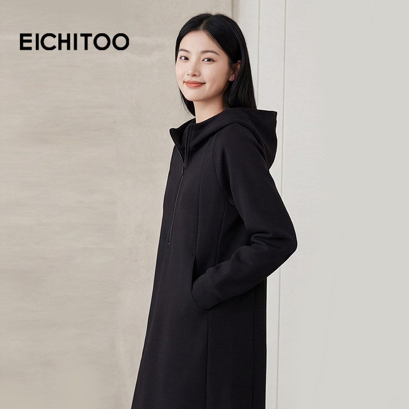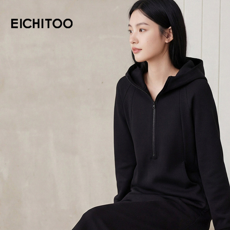 爱居兔连帽休闲连衣裙女春季 轻运动卫衣高级感长裙 新款