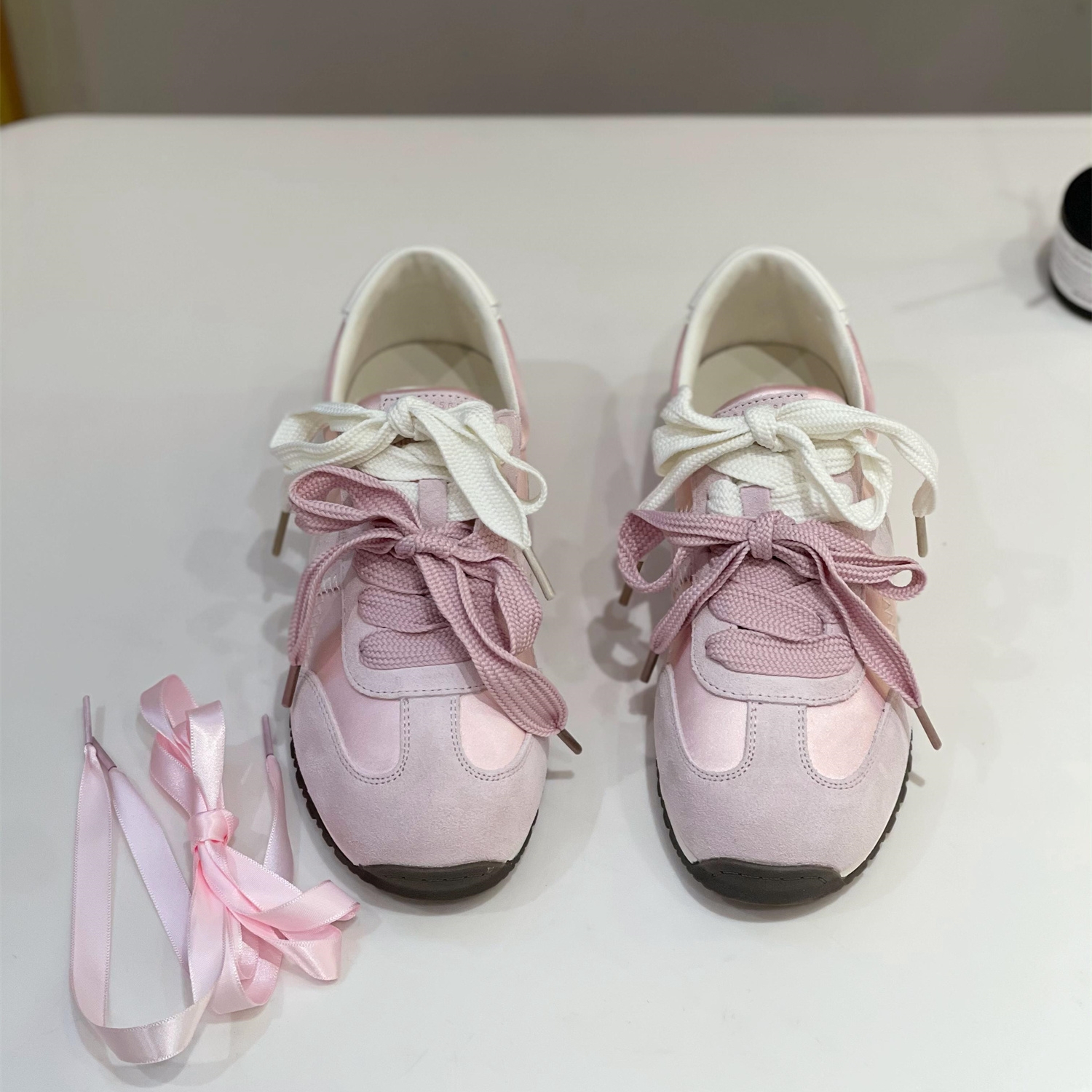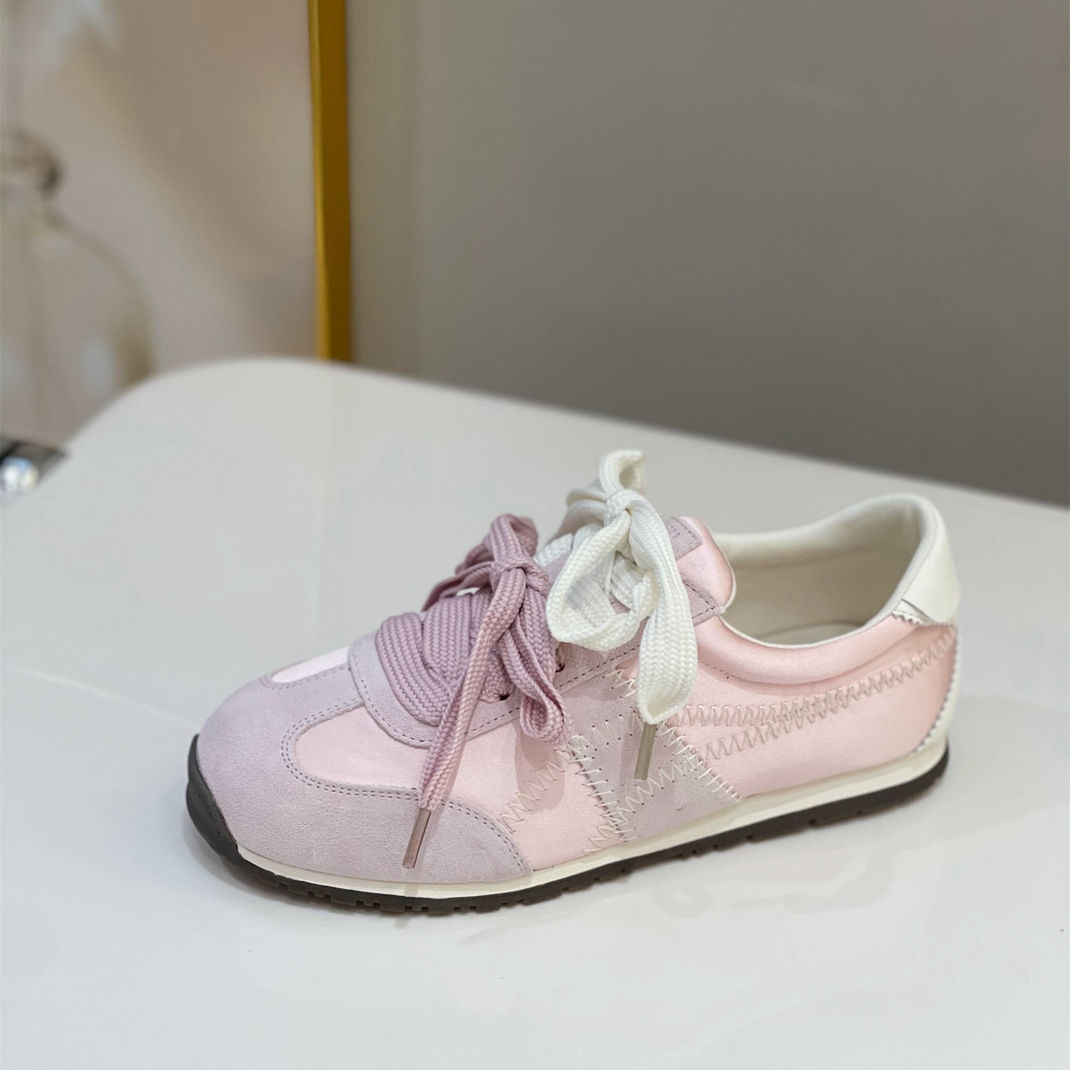 女2025秋季 阿甘鞋 新款 运动板鞋 平底显瘦小白鞋 网红粉色真皮德训鞋