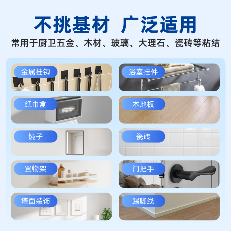免钉胶强力胶瓷砖免打孔粘胶透明玻璃胶水置物架踢脚线木工专用