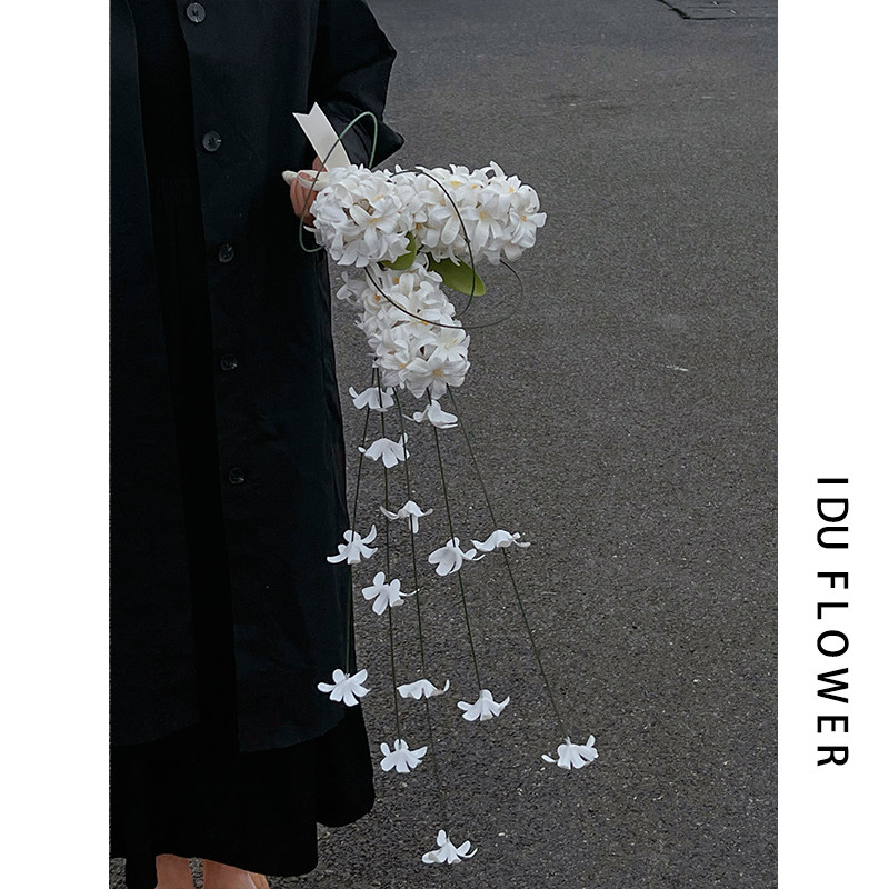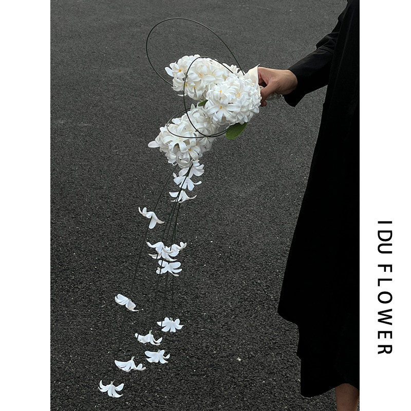 白色新娘手捧花婚庆风信子仿真花结婚花束高级感领证登记婚纱照