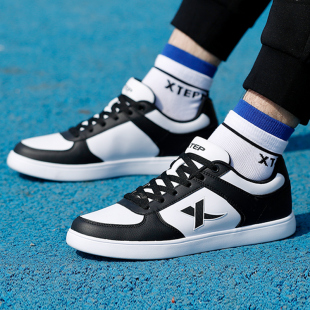 男士 旗舰板鞋 休闲鞋 低帮软底百搭时尚 特步男鞋 黑白运动鞋 官方正品