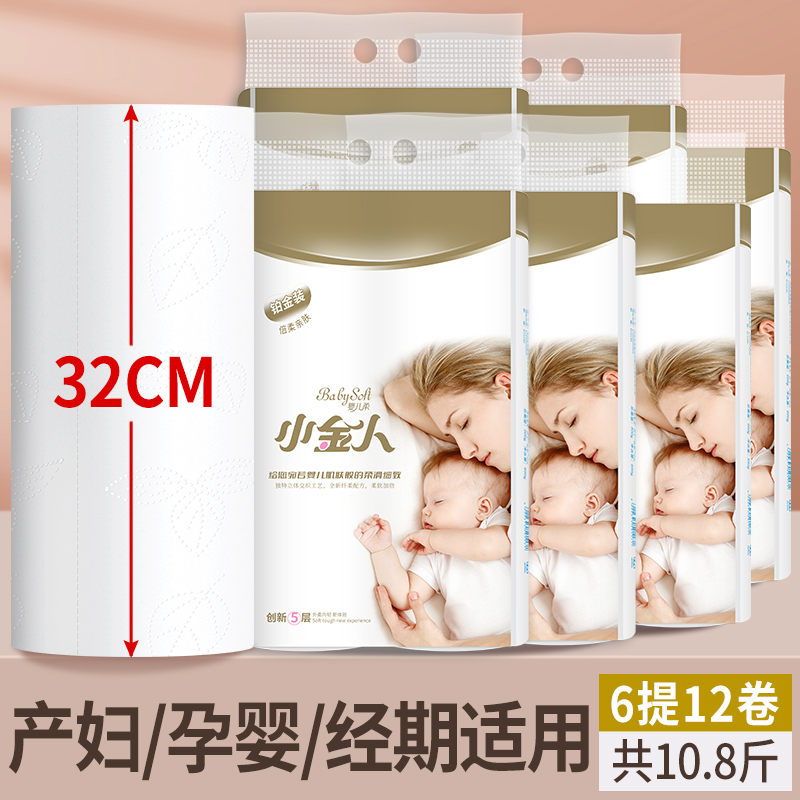 卷纸4层卷筒纸卫生纸巾厕纸家用实惠 清风原木金装 李昀锐同款
