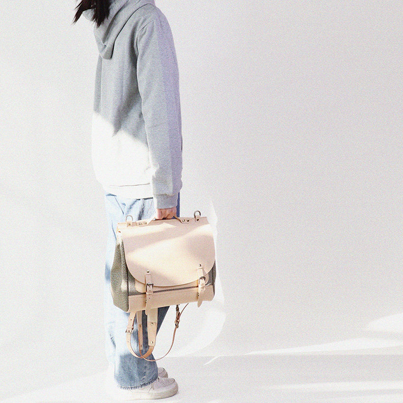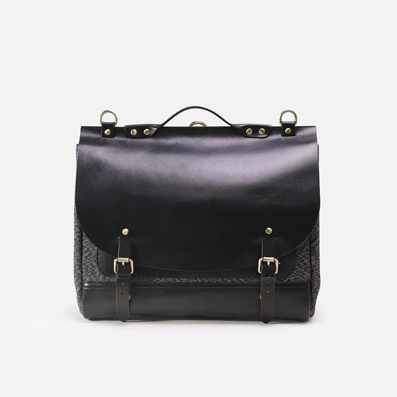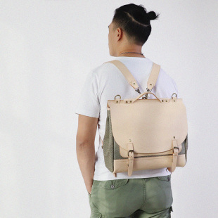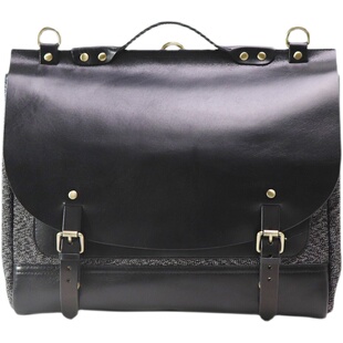 匠线 拼接胡椒盐帆布公文电脑男包真皮背包 植鞣牛皮剑桥包双肩包