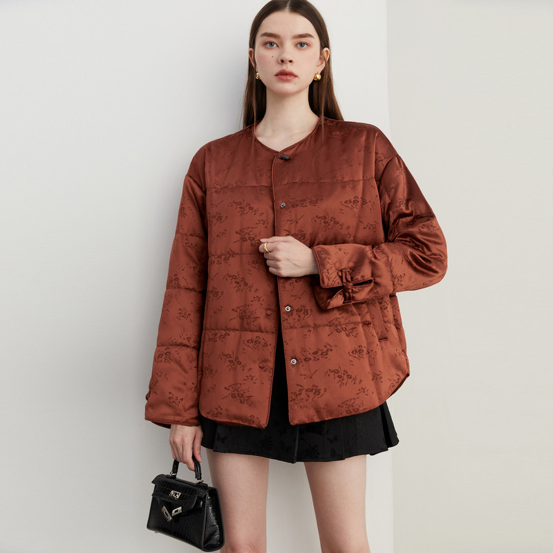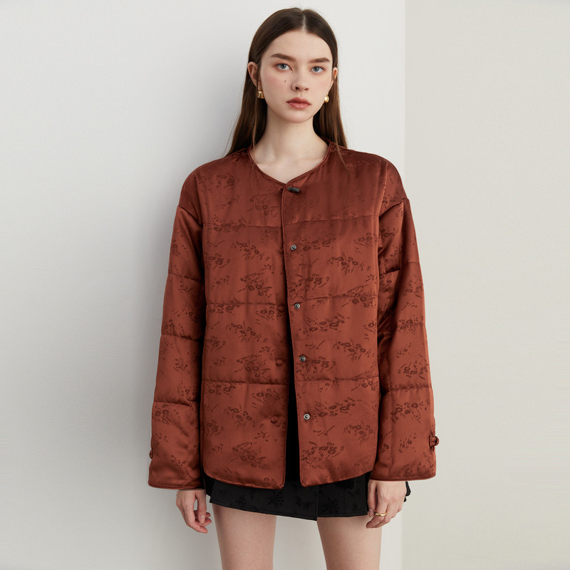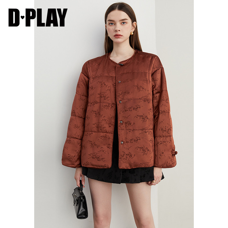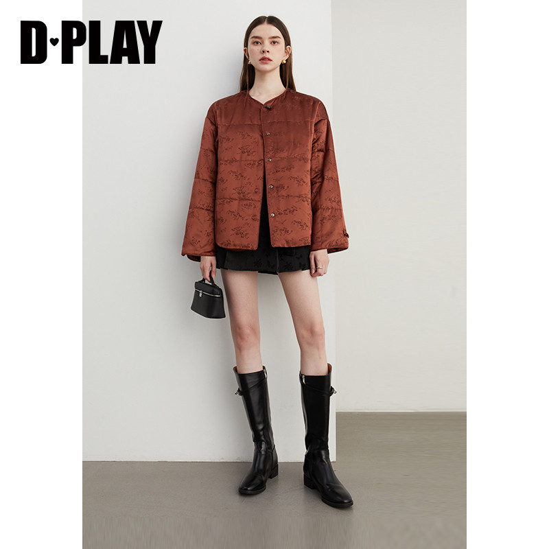 新中式 冬季 棕色鹅绒羽绒服国风缎面外套女 黑标鹅绒服 DPLAY